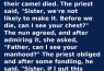 Without missing a beat, the nun turned to him and said, “Then put it in the camel so we can leave this place!”