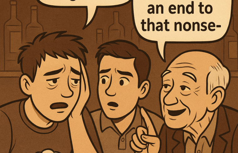 A man in his seventies, sitting a few stools down, had been quietly listening to their conversation. He slowly turned toward them, a knowing smile tugging at his lips.