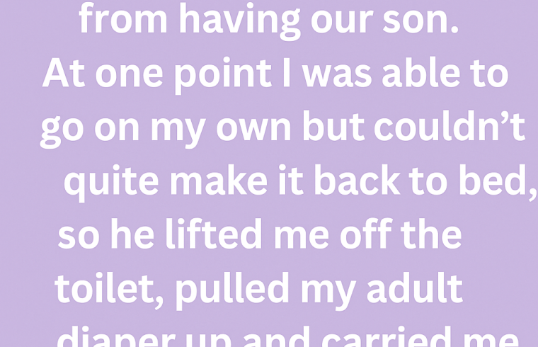 At one point, I was finally able to go on my own, but I couldn’t quite make it back to bed. My legs trembled beneath me, and I felt tears of frustration burn my eyes. Before I could say anything, he rushed over, lifted me gently off the toilet, pulled my adult diaper up, and carried me back to bed like I was made of glass.