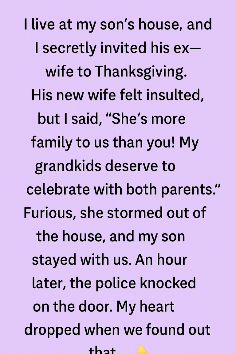 “I live at my son’s house, and I secretly invited his ex-wife for Thanksgiving dinner. His new wife was offended, but I told her, ‘She’s more family to us than you! My grandkids deserve to celebrate with both parents.’ Furious, she stormed out, while my son stayed with us.”