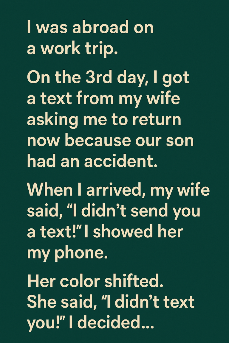 But the SMS was there, sent from her phone number. She turned to face me, her voice wavering. “I didn’t send that. I was planning to surprise you on your trip because I found out I was pregnant the day you left. But then I changed my mind—I started feeling nauseous.”