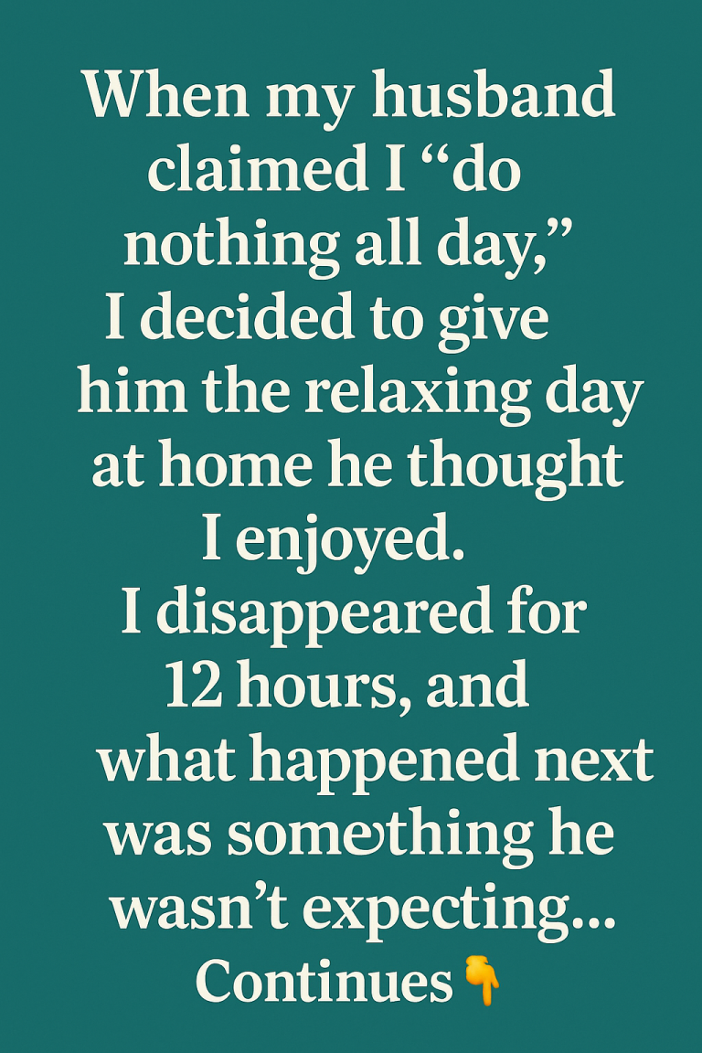 When my husband claimed I “do nothing all day,” I decided to give him the relaxing day at home he thought I enjoyed. I disappeared for twelve glorious hours, and what followed was a masterclass in perspective.