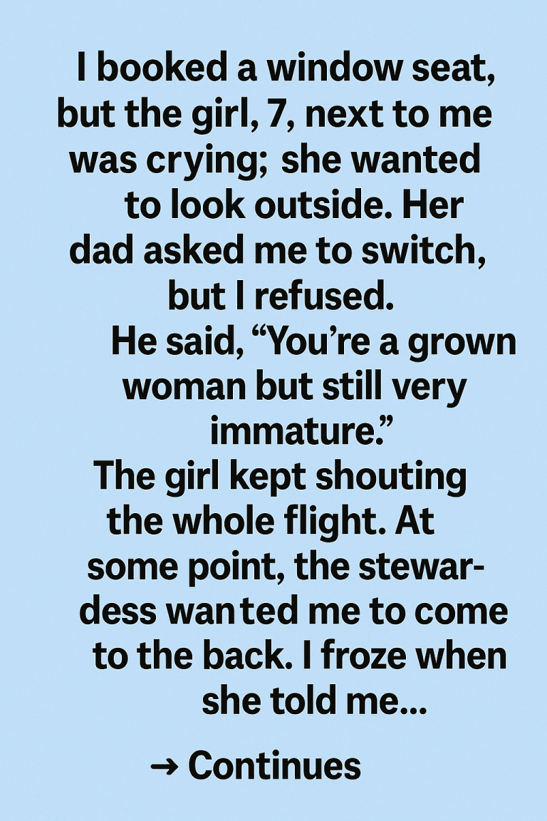 “I booked a window seat because I love looking out during takeoff and landing. A few minutes after boarding, a man sat beside me with his 7-year-old daughter. The little girl immediately started crying — she wanted to sit by the window.