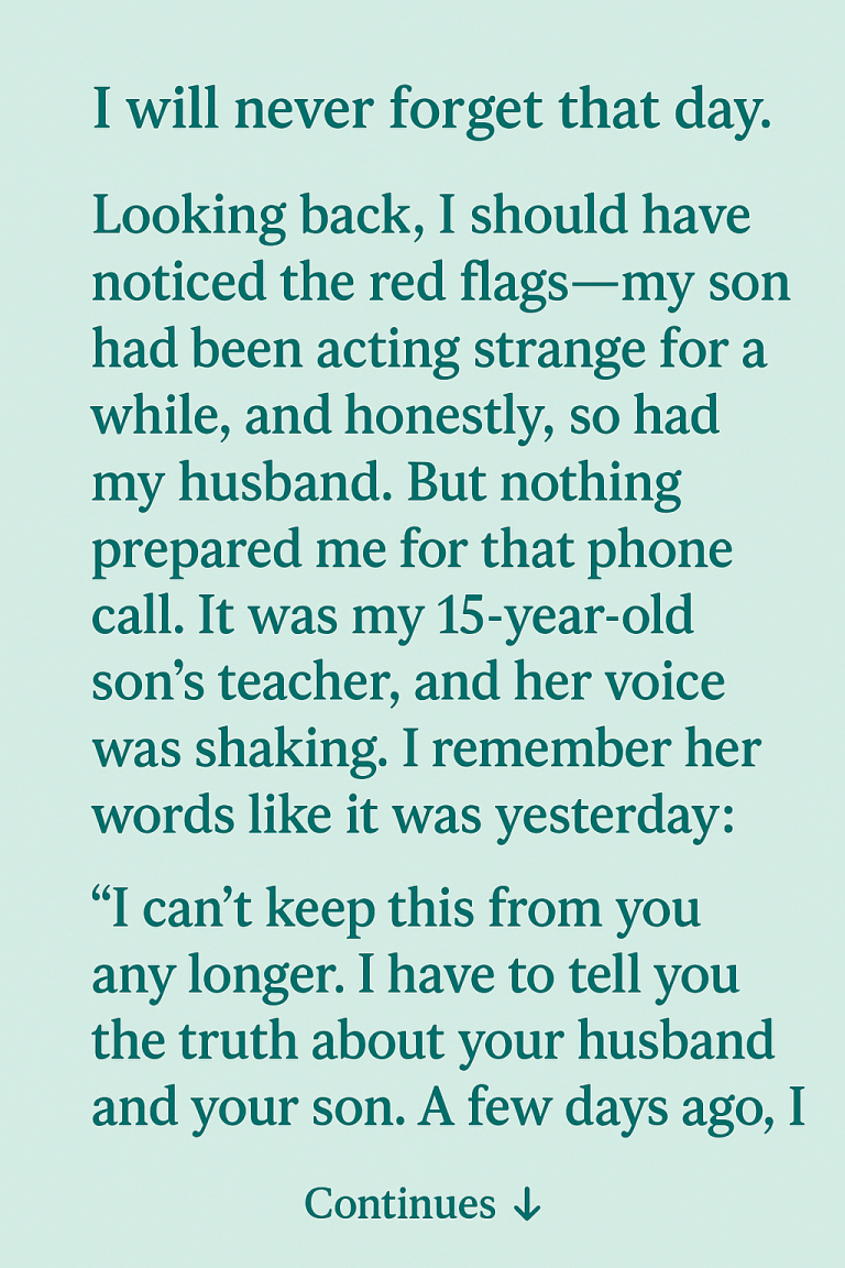 I’m 38, a working mom balancing deadlines and dinner, school meetings and Saturday movie nights. My husband, Daniel, 42, had always seemed dependable — a good father, a steady presence. Together, we’d built seventeen years of memories and raised our only child, Dylan, who had just turned fifteen.