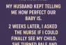 I gave birth prematurely. My baby was in the NICU, and I had to stay in the hospital. My husband kept telling me how perfect our baby was.