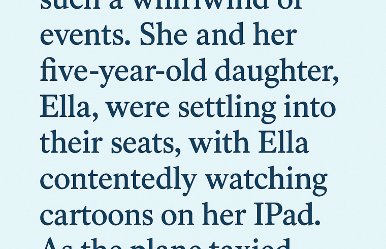 Bethany, 35 years old, never expected a short two-hour flight to bring such a whirlwind of events. She and her five-year-old daughter, Ella, were settling into their seats, with Ella contentedly watching cartoons on her iPad. As the plane taxied down the runway, Bethany felt relieved. For once, things seemed off to a smooth start.