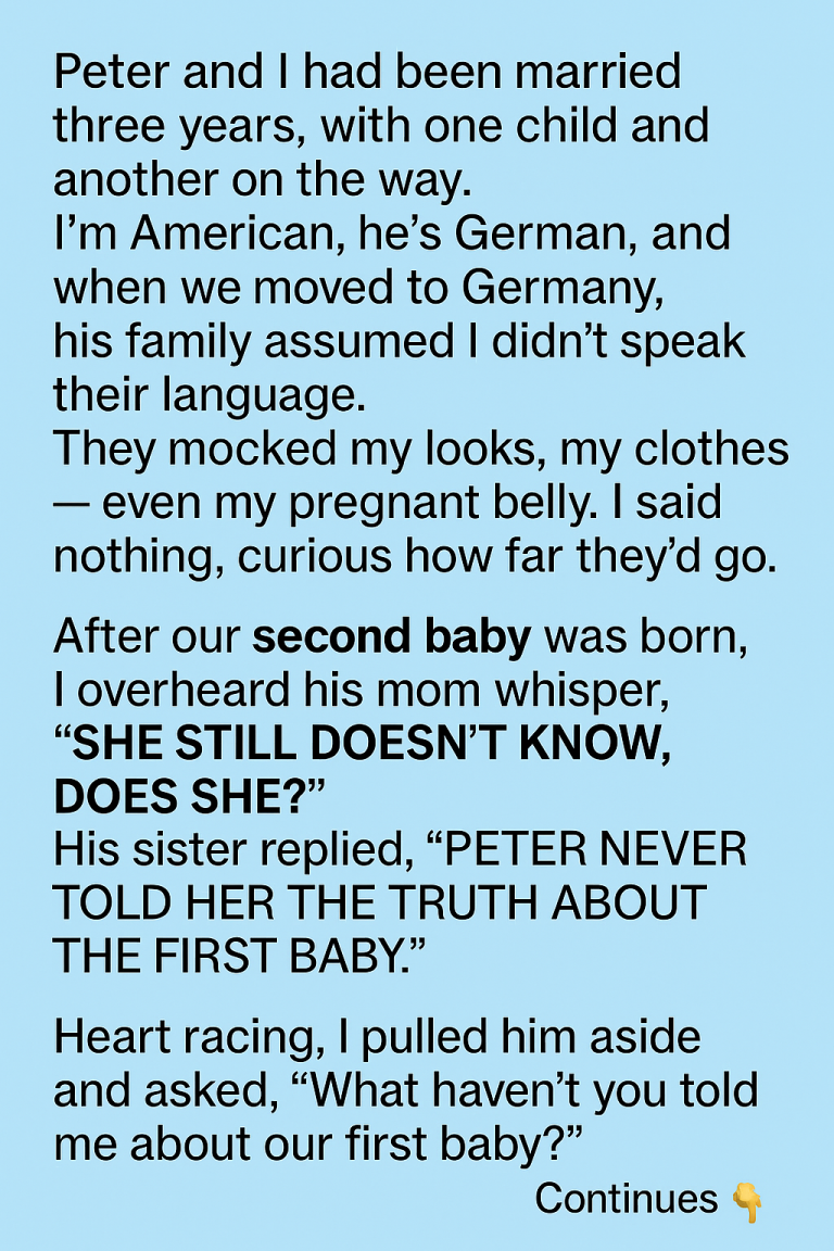 They were gossiping about our first child, whispering things no mother should ever hear. “Are we sure he’s even Peter’s?” his sister asked. “With that red hair, he looks nothing like our family.” Then his mother’s voice dropped lower: “Well, Peter never told her the truth, did he?”