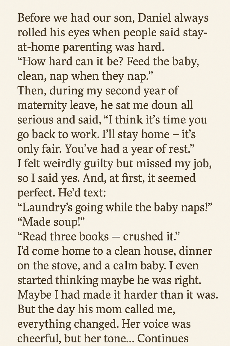 When my husband Daniel offered to stay home with our baby so I could return to work, I thought I’d hit the jackpot. I pictured a clean house, a happy baby, and warm, home-cooked meals waiting for me every evening. It felt like a dream come true — the kind of modern partnership you read about in parenting blogs but never expect to live.