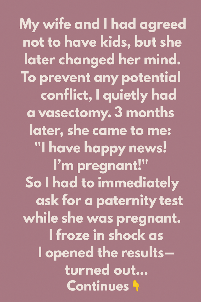 When the results arrived, I froze. The baby was mine. My so-called “solution” had failed — or maybe it hadn’t been performed correctly. Either way, the truth shattered me. I had accused an innocent woman of infidelity, all because of a secret I never should have kept.