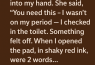 Confused, I excused myself and went to the restroom. I wasn’t on my period. I checked — nothing. But something about the way she’d looked at me… the urgency in her eyes… felt wrong.