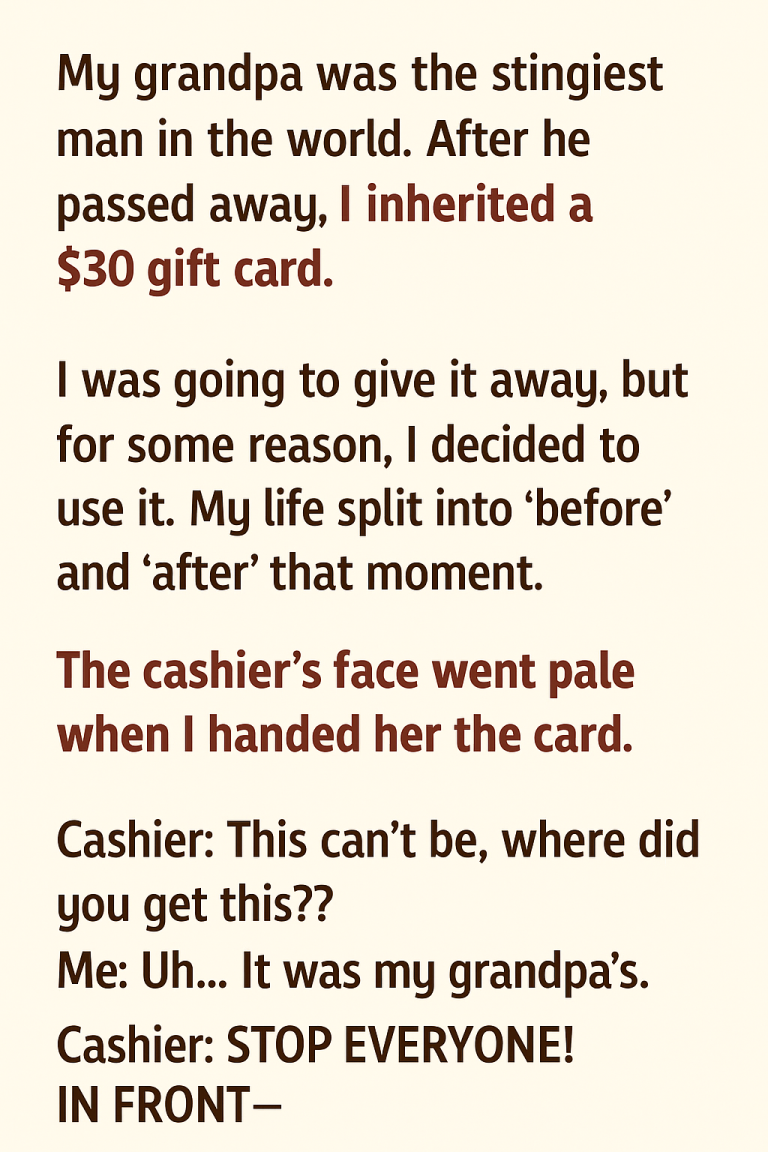 But after her grandmother’s death, her parents had intercepted the will and forged new papers, transferring everything to themselves. They’d stolen their own daughter’s inheritance — the very fortune they flaunted in front of her. To keep her quiet and dependent, they’d given her a $50 Walmart gift card every year under the pretense that it was her “share.”