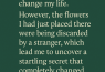 She turned slowly, her sharp features strikingly familiar yet alien. She couldn’t have been much older than me. With a cool, dismissive tone, she said, “These flowers were wilting. I was just tidying up.”