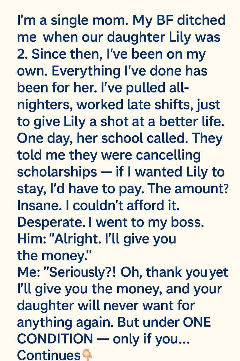 He sighed. “Grandma’s estate. Remember the condition in her will? I only inherit the trust fund if I’m married by next month. It’s ridiculous, I know — but if I can make it look official, the money would cover Lily’s tuition, and more. We could finally breathe.”