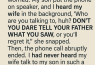 “Who are you talking to? Don’t you dare tell your father what you saw, or you’ll regret it!”