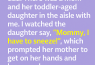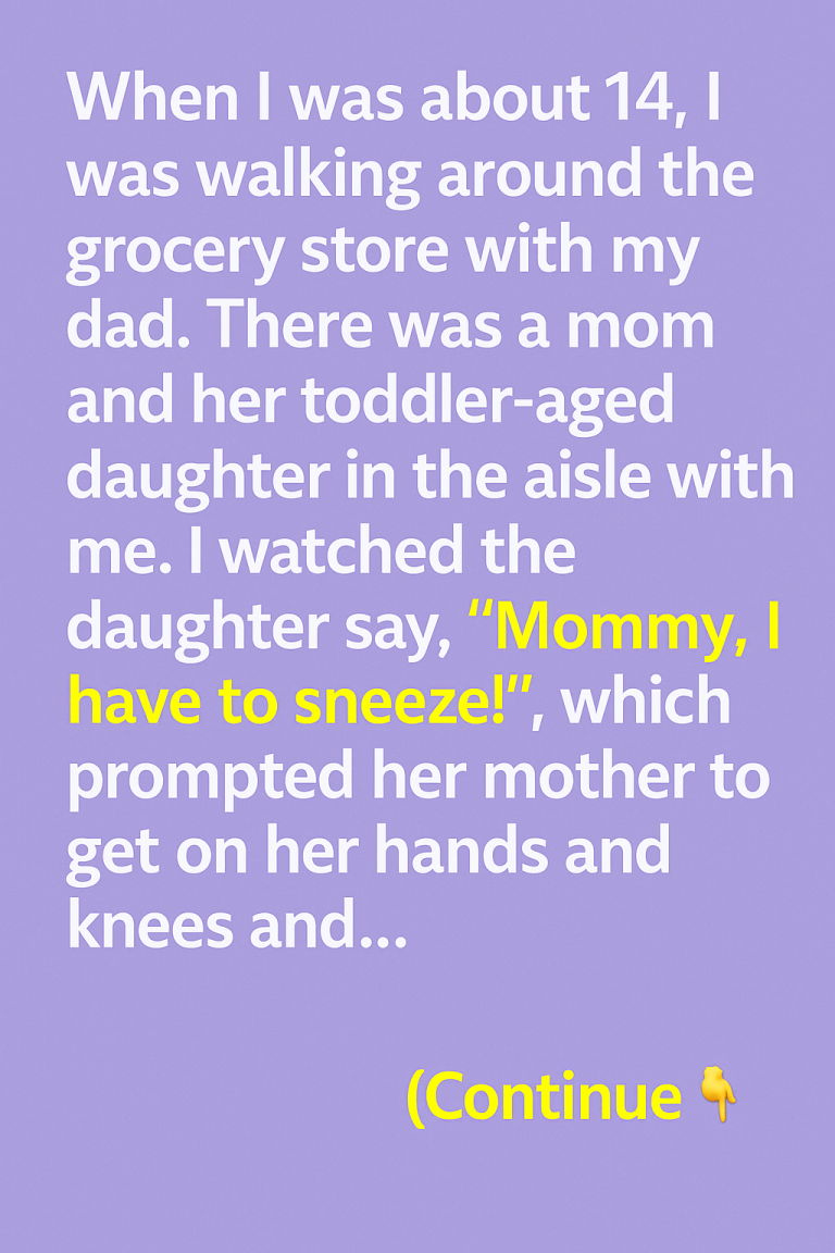 When I was about 14, I was walking around the grocery store with my dad. A mom and her toddler daughter were in the same aisle. The girl said, “Mommy, I have to sneeze!”