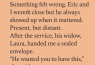 She held out an envelope. My name was written on the front in Eric’s handwriting.