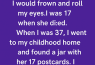 My grandma would only give me one old postcard for my birthdays. Every year, I’d frown, roll my eyes, and tuck it away somewhere. I was 17 when she died.