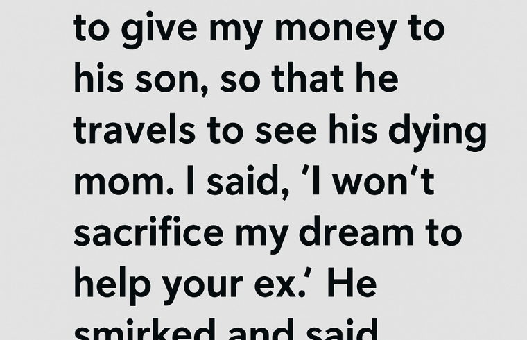 I froze. I cared about Liam, I really did — but his mom was my husband’s ex, a woman who’d never hidden her resentment toward me. Still, I told him gently, “I’m sorry, but I can’t. I’ve worked too long for this. I won’t sacrifice my dream to help your ex.”