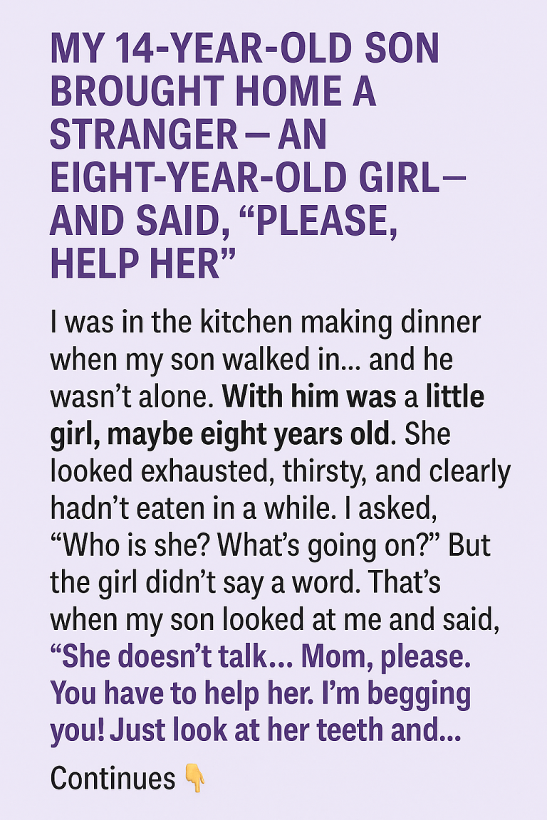 After a long shift at my dental clinic, I was in the kitchen, savoring a rare quiet moment, when my 14-year-old son, Mark, came home—his voice more urgent than usual. He wasn’t alone. Beside him stood a tiny girl, about eight, holding her jaw in obvious pain. She looked scared, cold, and fragile.