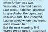 “Remember those tapes I told you about? The ones Nicole and I made during her pregnancy? I promised I’d give them to Amber when she turned eighteen.”
