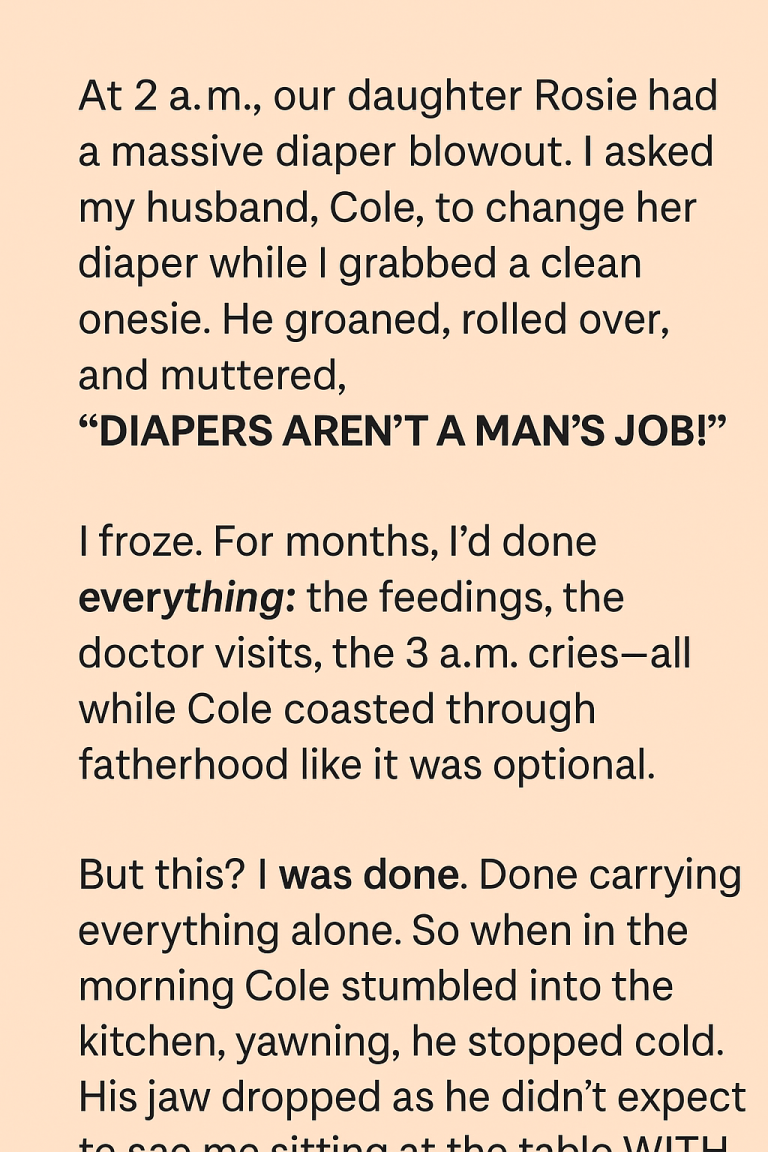 The words stung more than he’d ever know. For months, Jessica had handled everything—feedings, appointments, sleepless nights—while Cole floated through fatherhood as if it were optional.