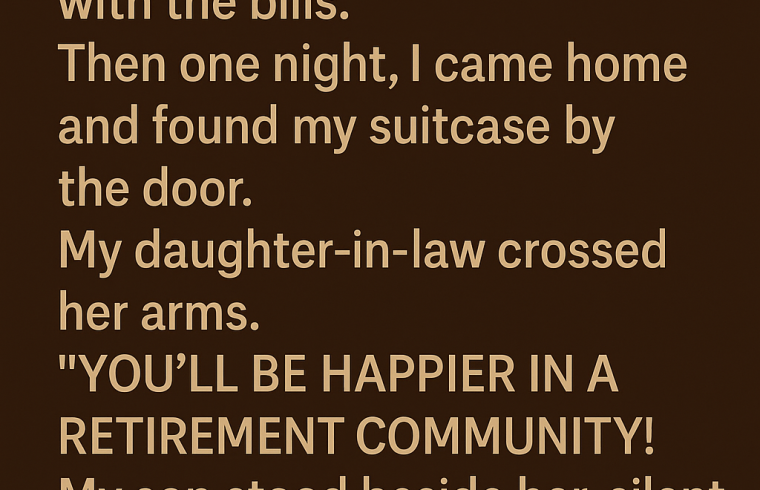 Claire stood with her arms folded, her tone sharp as glass. “We’ve been talking. You’ll be happier in a retirement community.”