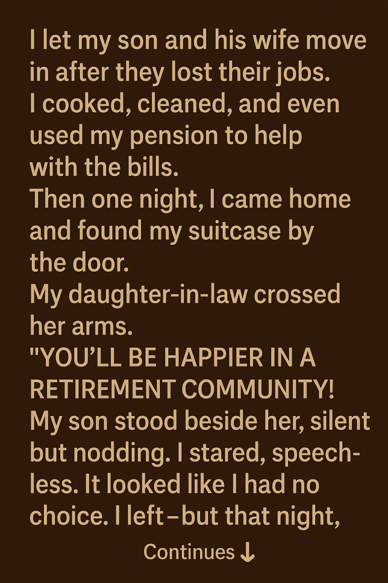 The following weeks blurred. I gave them the master bedroom, moved into the guest room, cooked their meals, and quietly paid the bills when their savings ran dry. I even dipped into my pension to cover groceries.