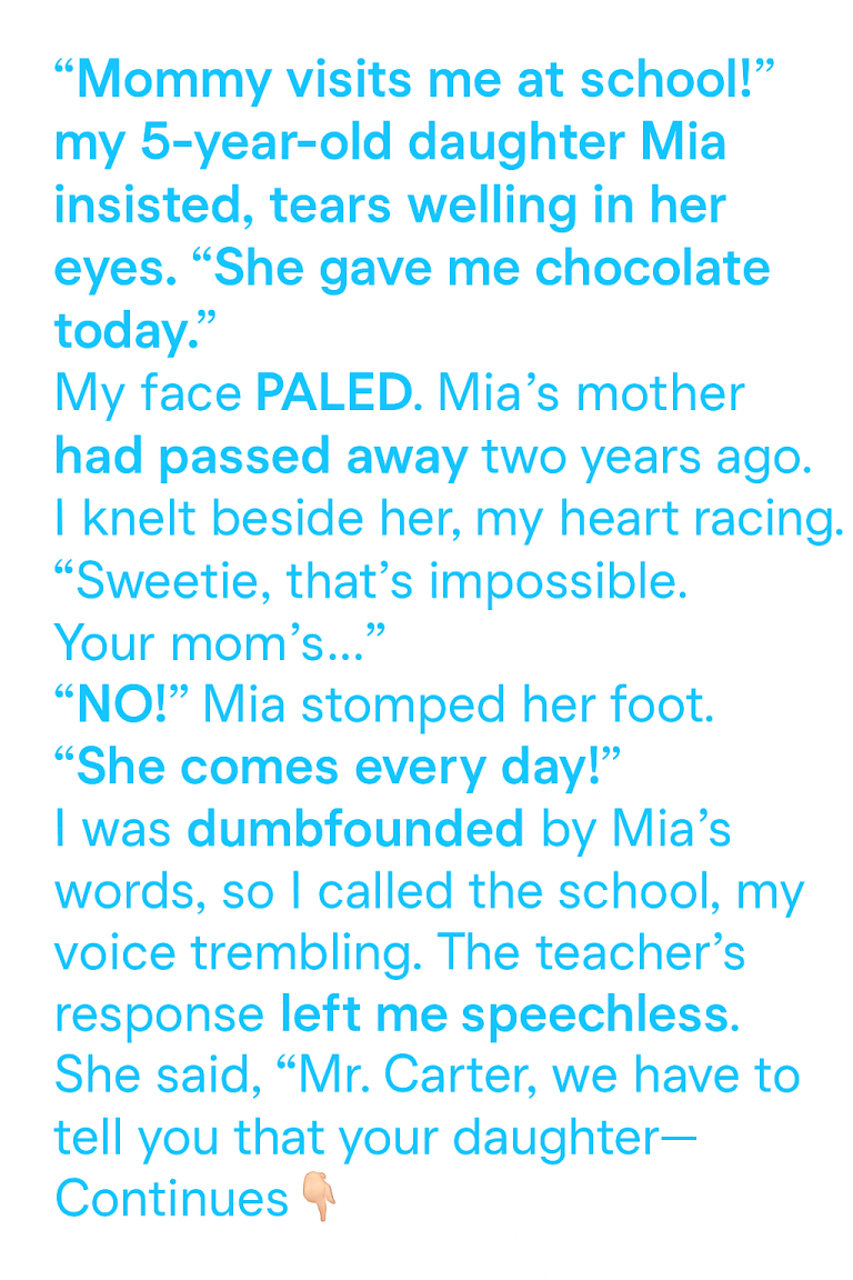 There was a pause. “Mr. Carter,” she said hesitantly, “I’ve noticed a woman. She talks to Mia sometimes — outside, near the playground. I’ve tried to approach her, but she always disappears before I can reach her.”