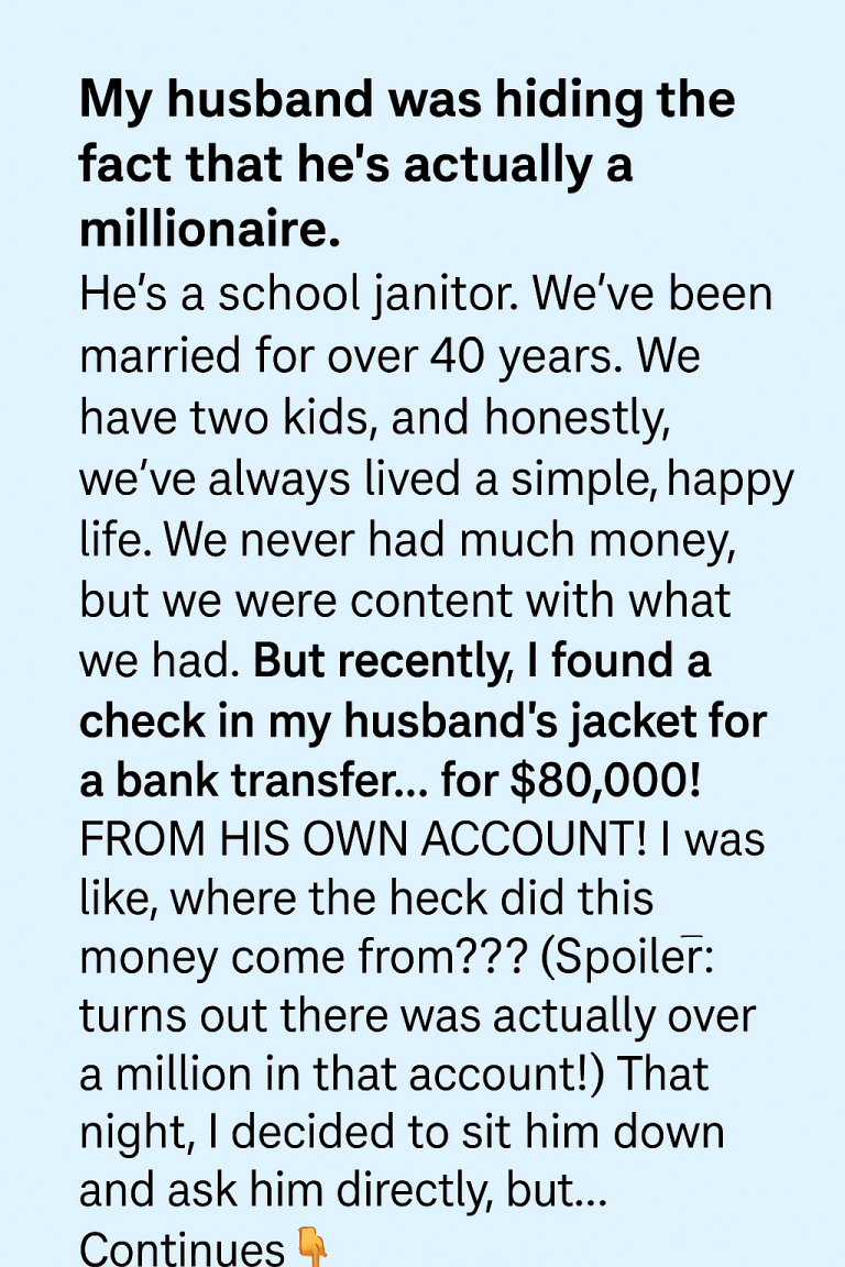 I froze. Eighty thousand dollars? From his account? We’d never had more than a few thousand saved — and that only after years of pinching pennies.