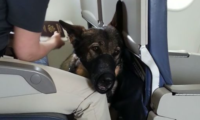 Window seat, noise-canceling headphones, maybe a nap if the turbulence played nice. I barely noticed the guy sliding into the row across from me, until I saw the muzzle—tight and secure—on the German Shepherd wedged awkwardly between his legs and the seat in front of him.