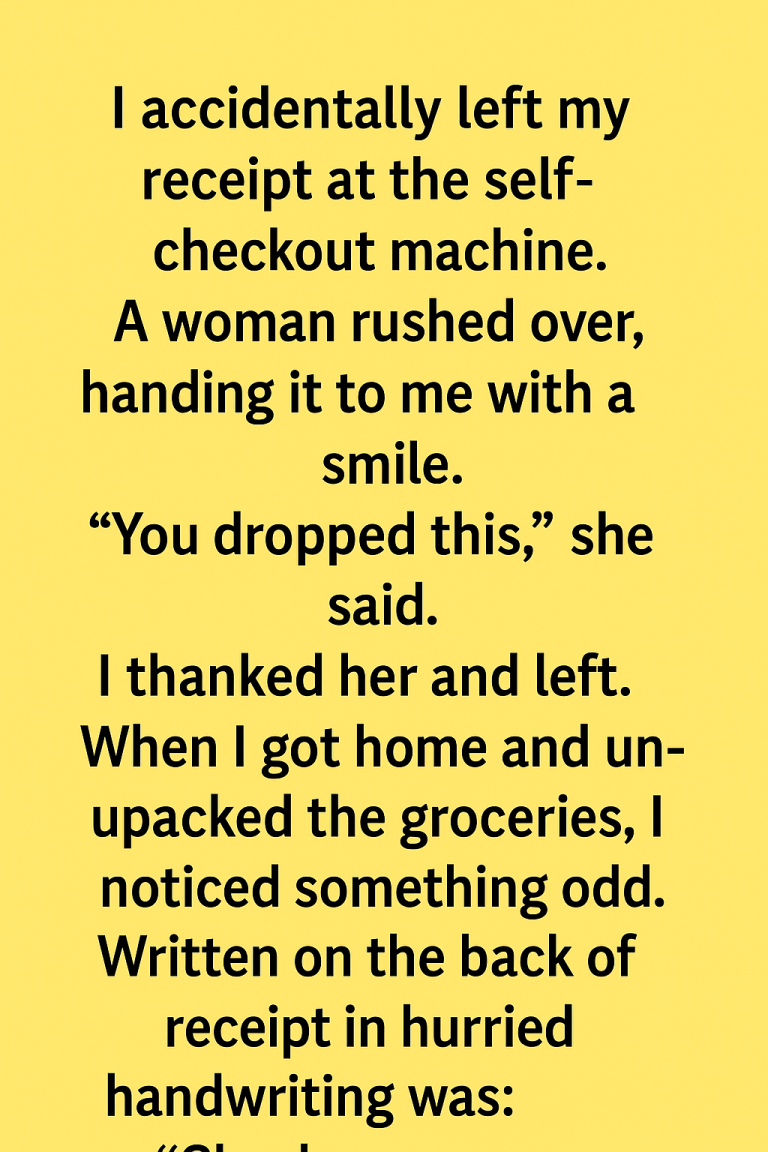 As I unpacked my groceries, I noticed something scrawled on the back of the receipt in hurried handwriting: