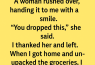 A woman rushed over, handing it to me with a kind smile. “You dropped this,” she said.