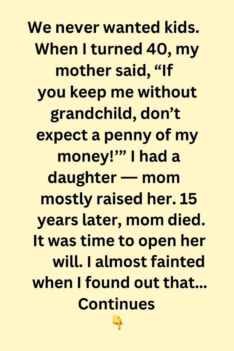 I don’t want the fortune. I just wish my mother had left me something I could never buy or inherit — a real relationship with my own child.
