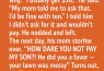 Julie folded her arms tighter. “He was doing you a favor! Your grass was an embarrassment. It made the whole street look bad, so I told him to fix it.”
