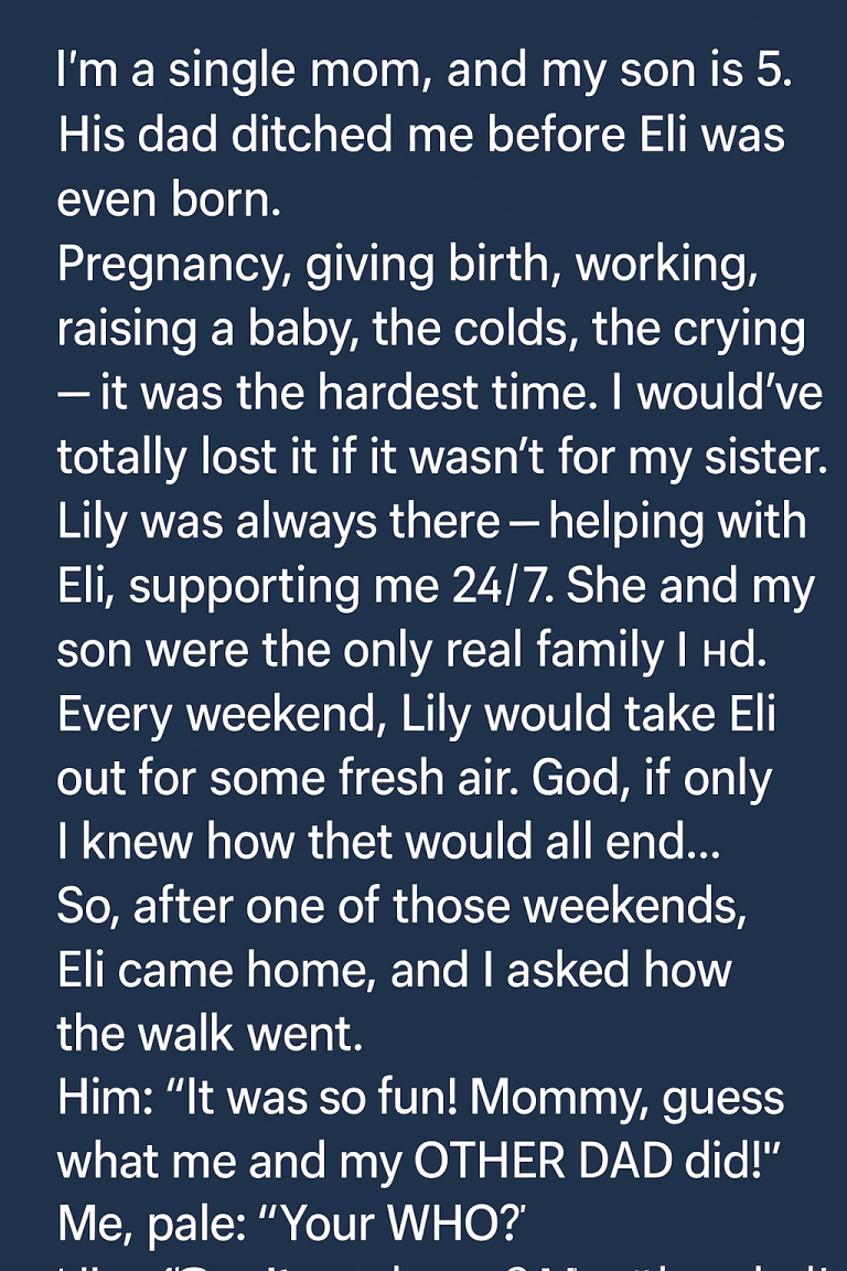 When my five-year-old came home raving about something he did with his “other dad,” I laughed—until I realized he wasn’t pretending. And when I found out my sister was in on it, my world cracked wide open. I had to find out who this man was… and why she hid him from me.