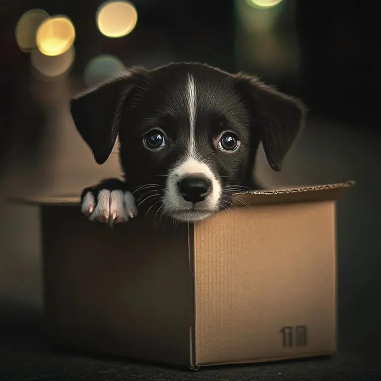 Burt’s painful knees protested as he knelt down to inspect. Inside, a tiny black and white puppy trembled, its big eyes pleading for help. A crumpled note was taped to the box: “Please take care of him!”
