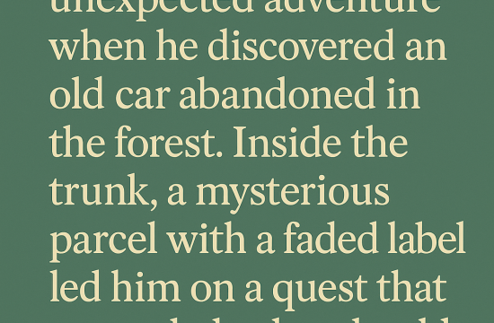 Paul’s quiet weekend photography trip turned into an unexpected adventure when he discovered an old car abandoned in the forest. Inside the trunk, a mysterious parcel with a faded label led him on a quest…