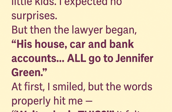 Megan showed up to hear her late husband’s will, expecting closure—not betrayal. But when the polished young lawyer read his final words, Megan learned the unthinkable: everything had been left to her. Not to his…