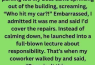 I accidentally scraped a car in the parking lot while trying to squeeze into a tight space. Before I could even get out to assess the damage, my boss came sprinting out of the building,…