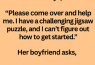 “The Rooster That Never Was: AA blonde calls her boyfriend in a bit of a panic and says,“Please come over and help me. I’ve been staring at this jigsaw puzzle for hours, and I just…