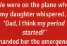 We were on the plane when my daughter leaned over, eyes wide and cheeks flushed, and whispered, “Dad, I think my pe.ri.od started!” There was a brief moment where time paused—just long enough for me…
