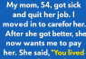 When my mom fell gravely ill with pneumonia, I dropped everything—broke my lease, left my job, and moved back in to care for her around the clock. For six months, I cooked her meals, managed…