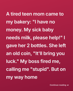 A tired teen mom came to my bakery: “I have no money. My sick baby needs milk, please help!” I was wiping down the counter at “The Golden Crust” in a quiet corner of Birmingham…