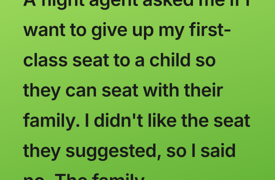 A flight agent asked me if I wanted to give up my first-class seat to a child so they could sit with their family. I didn’t like the seat they suggested, so I said no.…