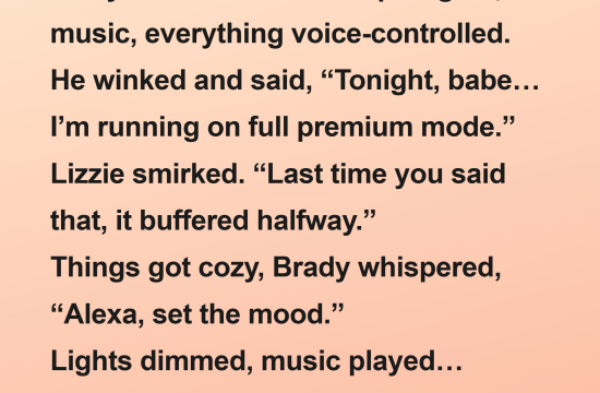 Brady finally surprised Lizzie with a fancy “smart home” setup—lights, music, everything voice-controlled.He winked and said, “Tonight, babe… I’m running on full premium mode.”Lizzie smirked. “Last time you said that, it buffered halfway.” Things got…