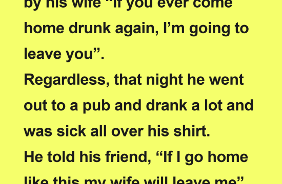 A man who drank alot was told by his wife “If you ever come home drunk again, I’m going to leave you”. Regardless, that night he went out to a pub and drank a lot…
