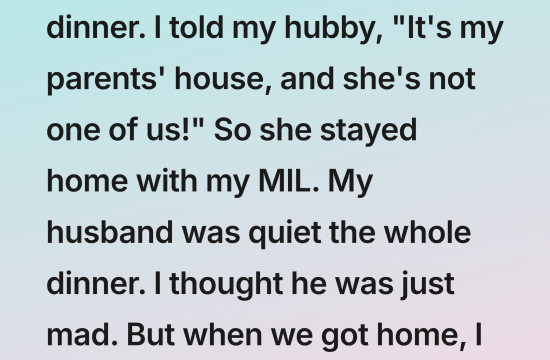 I excluded my stepdaughter, 10, from my family’s Christmas dinner. I told my hubby, “It’s my parents’ house, and she’s not one of us!” I said it in the heat of the moment while I…