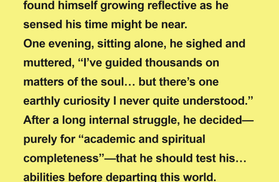 An 85-year-old priest, who had lived a life of strict discipline and devotion, suddenly found himself growing reflective as he sensed his time might be near. One evening, sitting alone, he sighed and muttered, “I’ve…