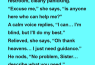 Relieved, she says, “Oh thank heavens… I just need guidance.”