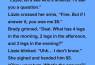 One day, Brady whispered,